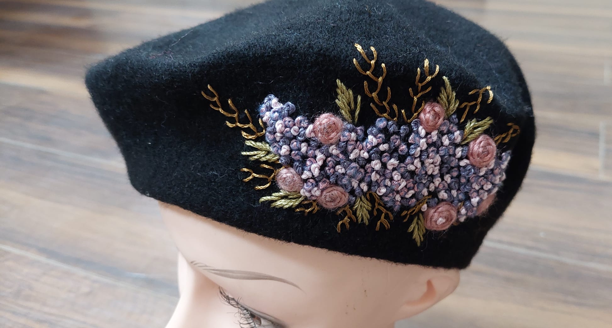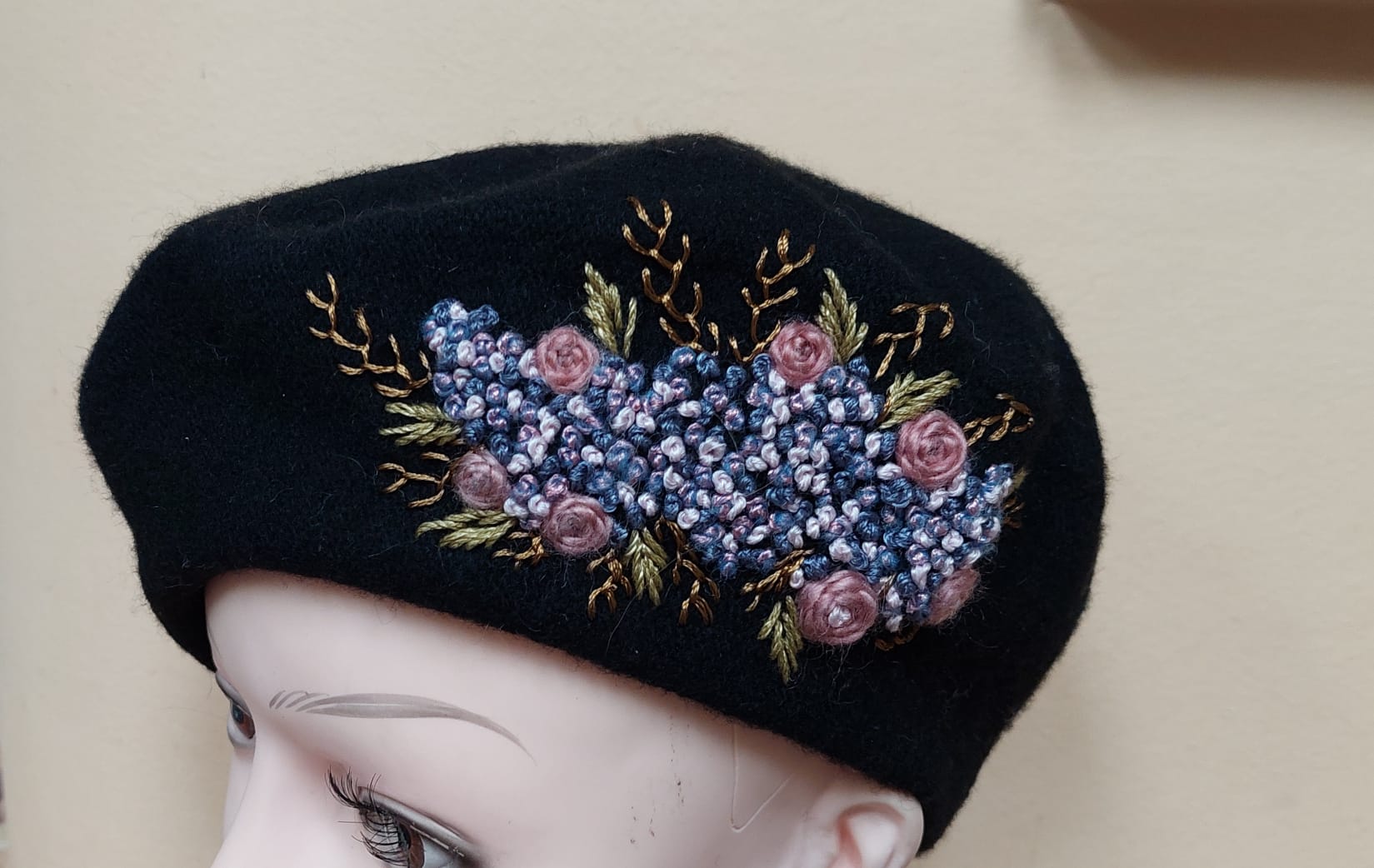 Bereta Neagra cu Broderie Abstracta Floral – Marta CrochetArt