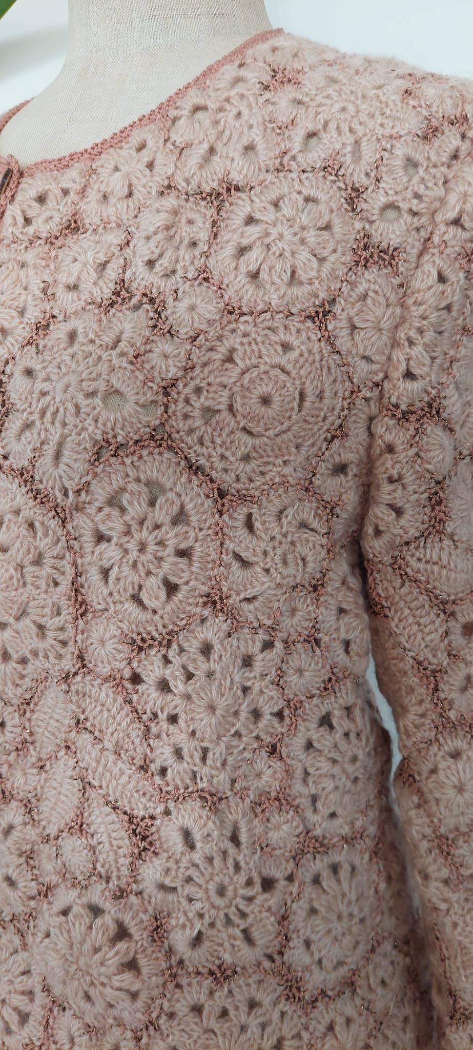 Perfectă pentru a adăuga un strop de eleganță garderobei tale, această jacheta crosetata manual reflectă arta și măiestria inconfundabilă a brandului Marta CrochetArt. O alegere excelentă pentru acele momente în care dorești să te simți specială și sofisticată.